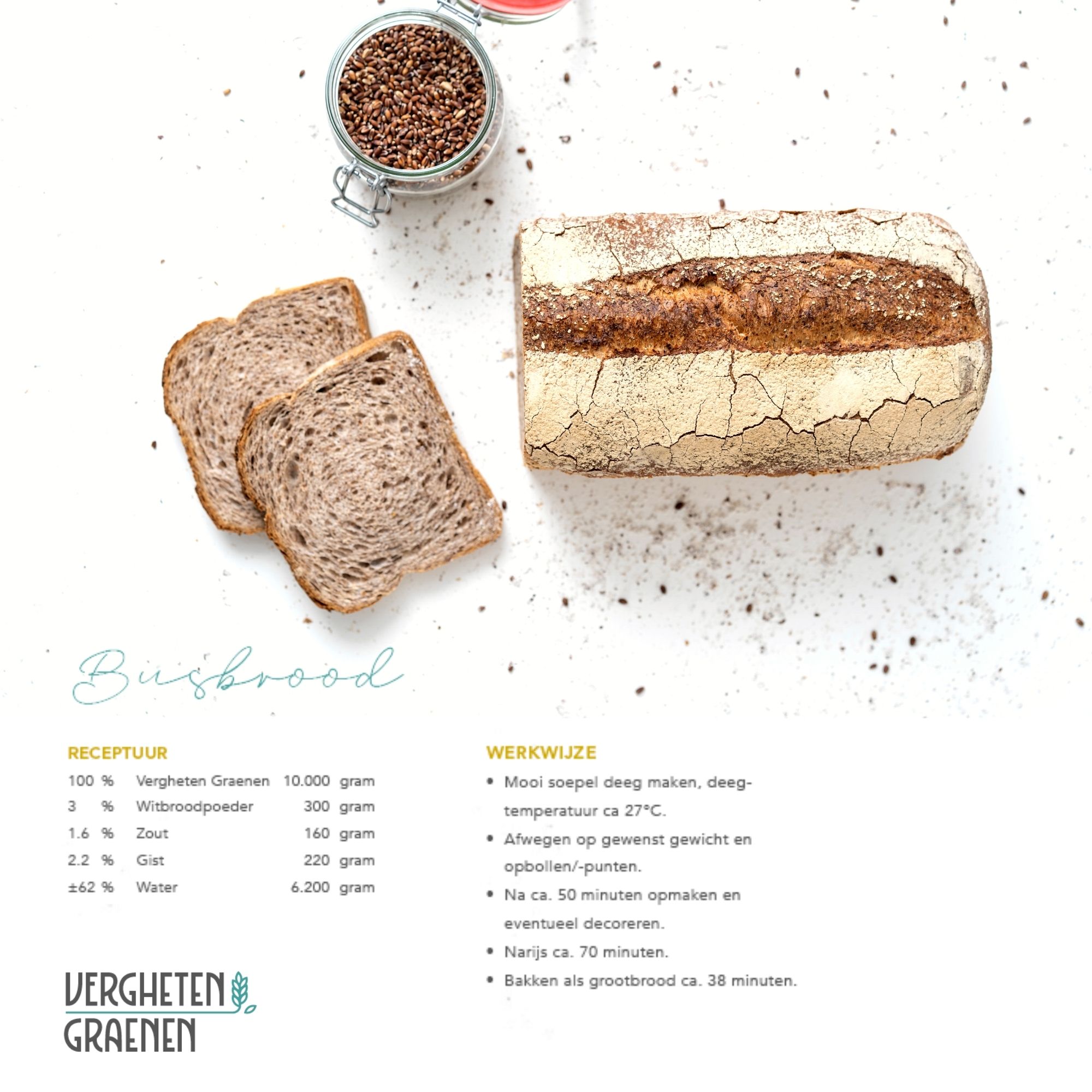 Vergheten Granen is een melange van 4 authentieke granen: Emmer, Khorasan, Rotkorn en Rogge. Om in te spelen op de moderne consument kan er van Vergheten Graenen een groot assortiment producten gebakken